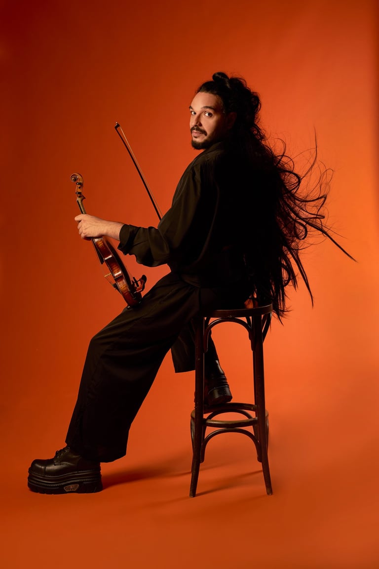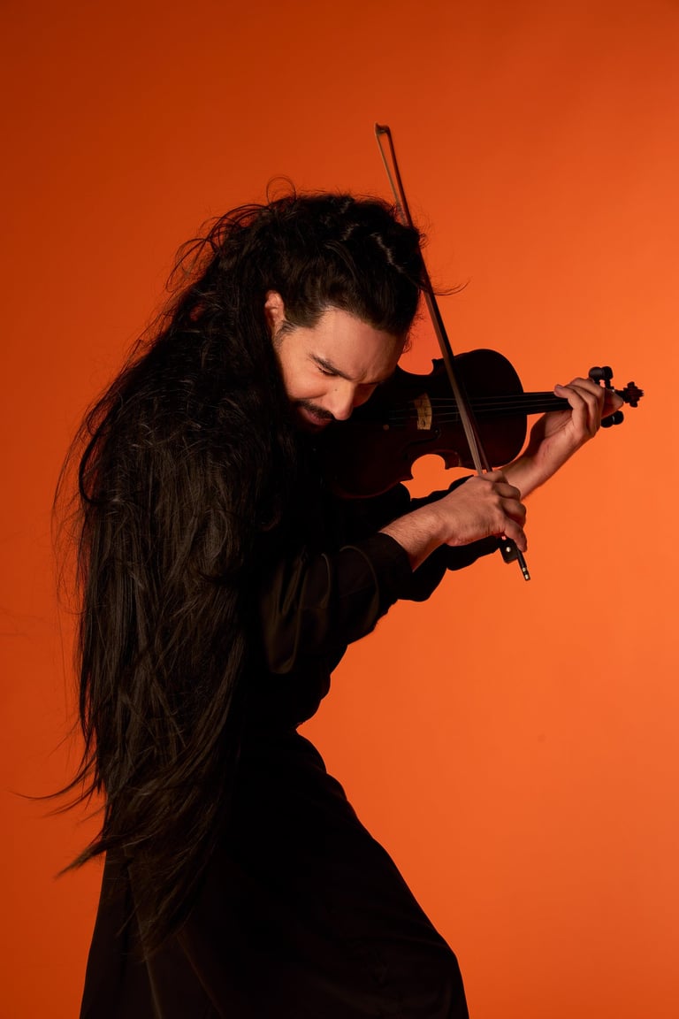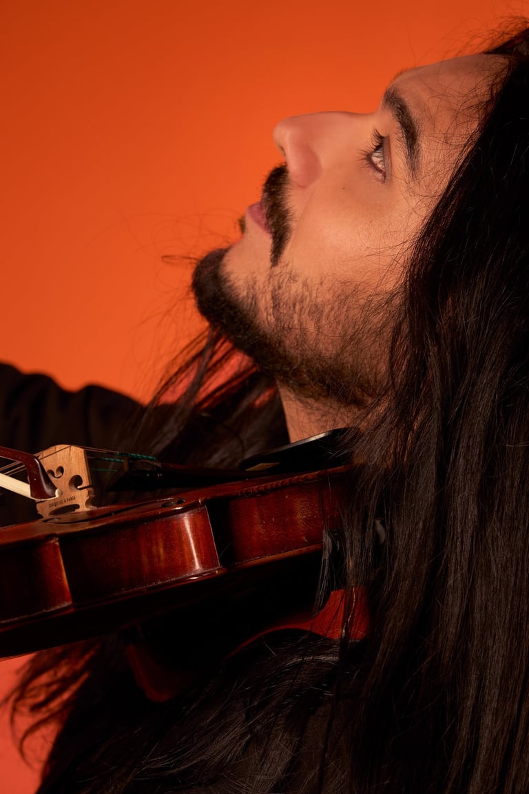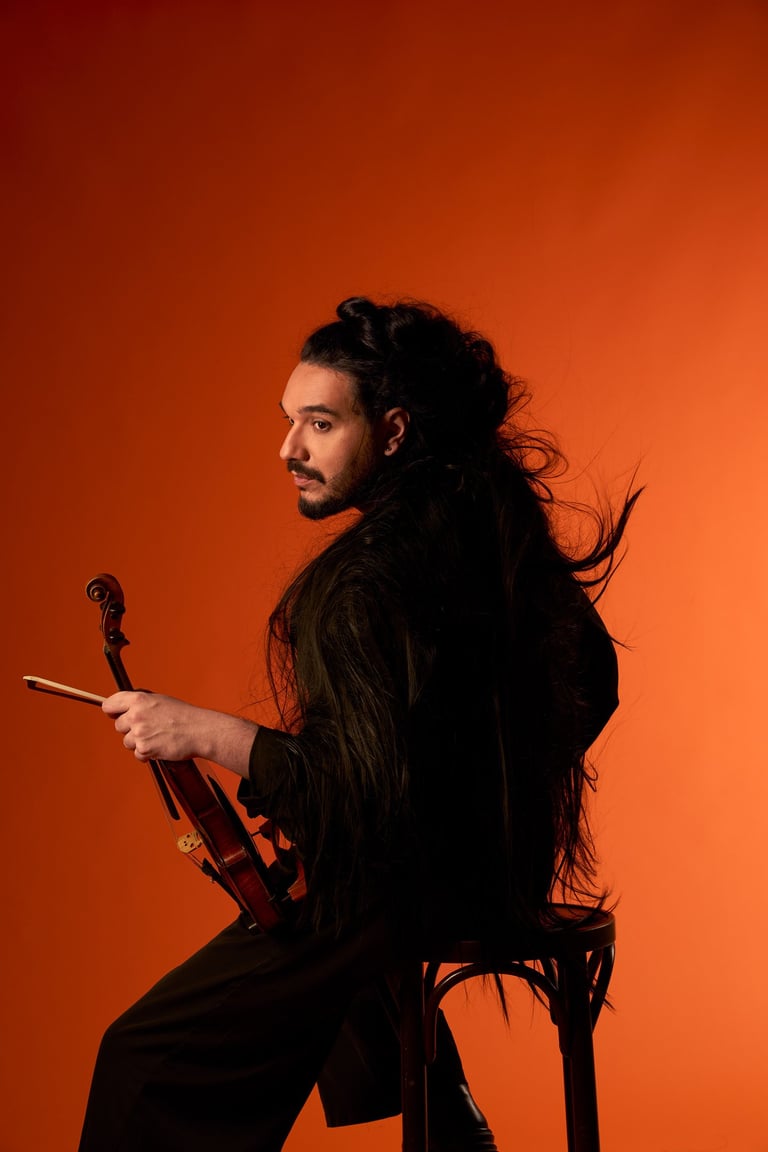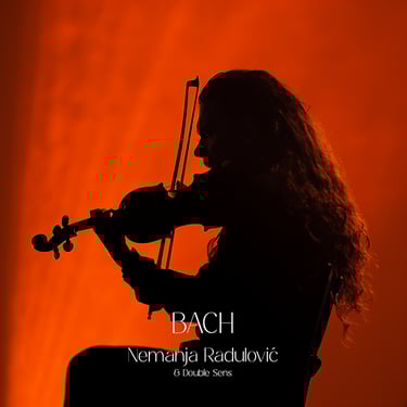 I designed the concept inspired by 18th-century chiaroscuro, using bold contrasts of light and shadow to create depth and drama. The vibrant orange introduces a modern edge while contrasting Nemanja’s first Bach album in blue. Even with his face partly hidden, his identity comes through in his hair, style, violin, and silhouette, reflecting the dynamic energy of the music and arrangements.